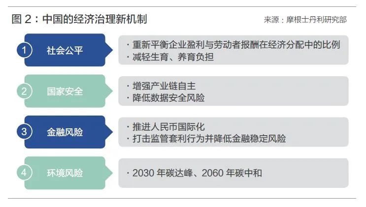 自去年以来,对房地产、金融科技、互联网平台、加密货币、碳排放、校外培训等行业的监管行动,伴随着对“共同富裕”的目标阐述,并非突兀之举,都是中国新阶段治理框架转变的重要组成部分。纷至沓来的“监管风暴”似乎让一部分市场参与者始料未及,市面上也出现了一些相对片面的解读声音。但从大方向上来看,政策非常明确:决策层认为新阶段的主要挑战来自贫富差距、产业链短板、数据安全与金融稳定,因此逐步树立的经济治理新机制,通过堵漏洞、补短板、稳杠杆,降低系统性风险,增强社会公平、国家安全和产业链自主。